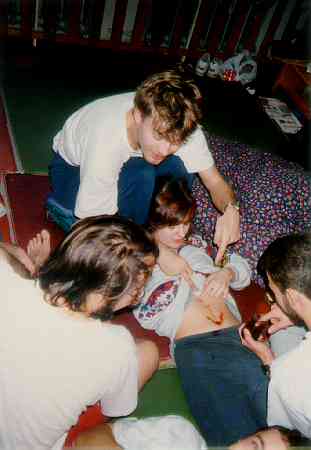 A jelikož již měla Petra marmelády dost, tak se tohoto milého úkolu, po krátkém přemlouvání, ujal sám pan předseda Klubu panen a paniců. Zde mi bohužel došel film a tak pokračování už není. Pro informaci - marmeládový zábal obdrželi ještě Diana a Arin.