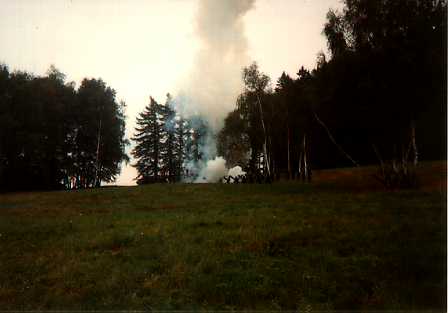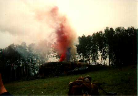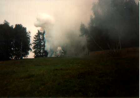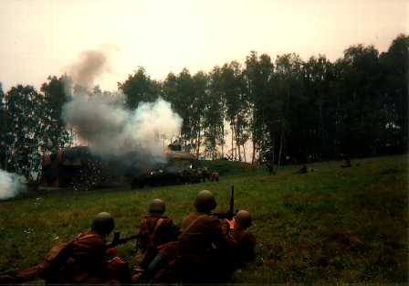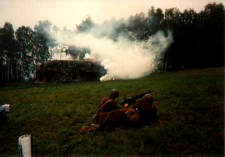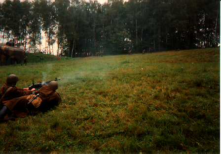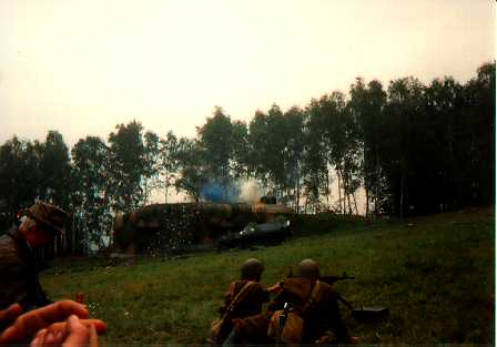 Transportér kouří a za ním se snaží o nemožné skupina němců. Mimochodem. Zvukové efekty byly dokonalé.