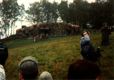 zastavena před hlavněmi zbraní a až po prověření byla jednotka vpuštěna do bunkru.
